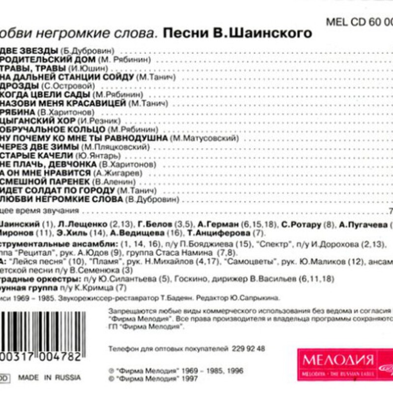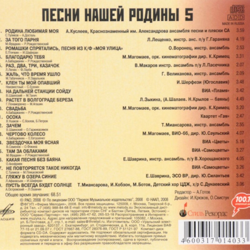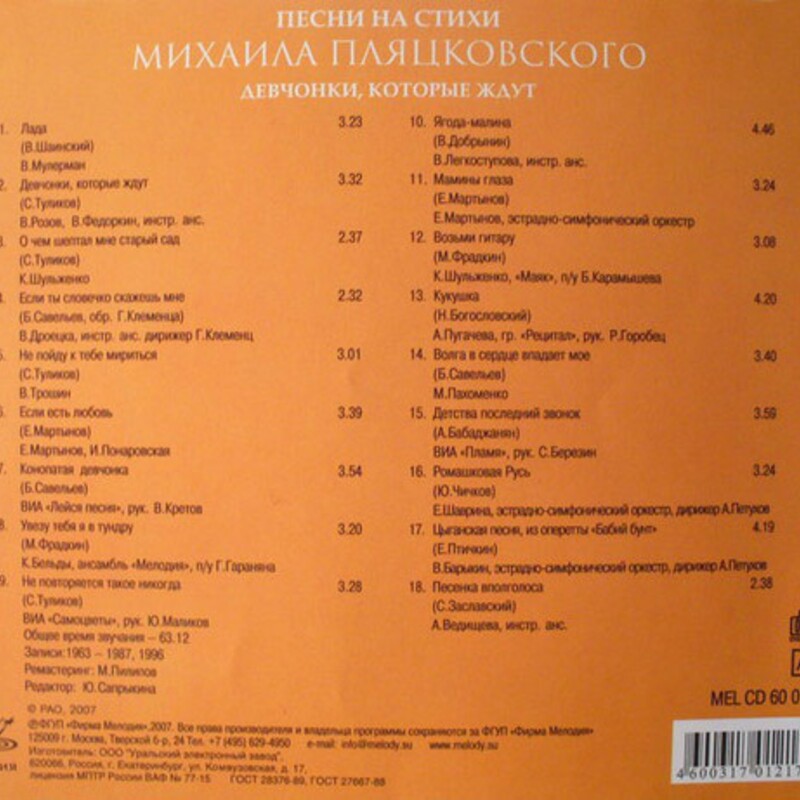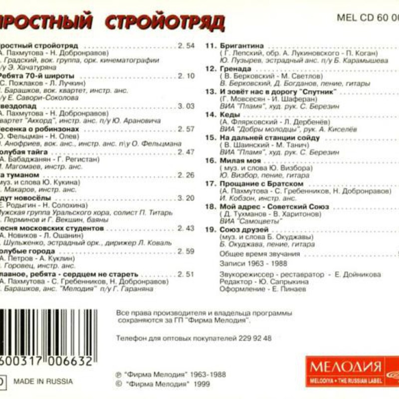Мелодия – MEL CD 60 01403 / 2008